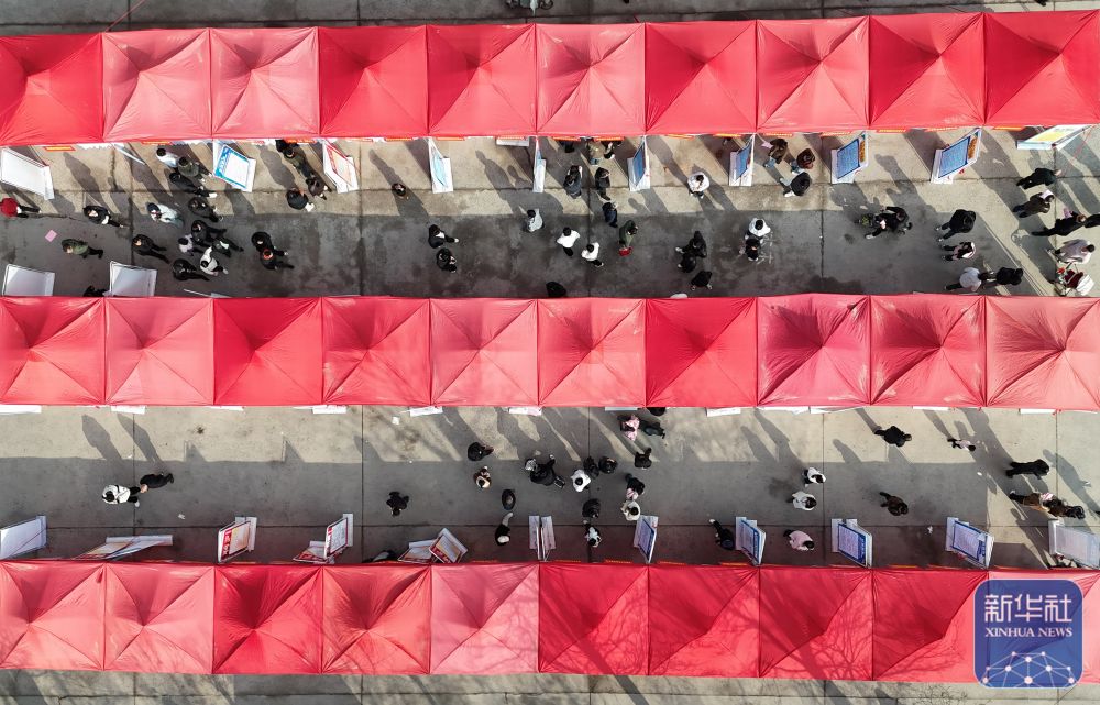 ↑ 这是2月24日拍摄的河南省焦作市温县“春风行动”专场招聘会现场(无人机照片)。新华社发(黄福兴摄)