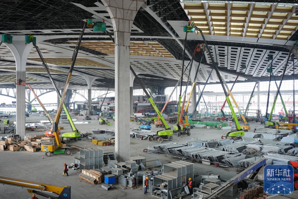 ↑ 西安东站候车大厅施工现场(2月26日摄)。