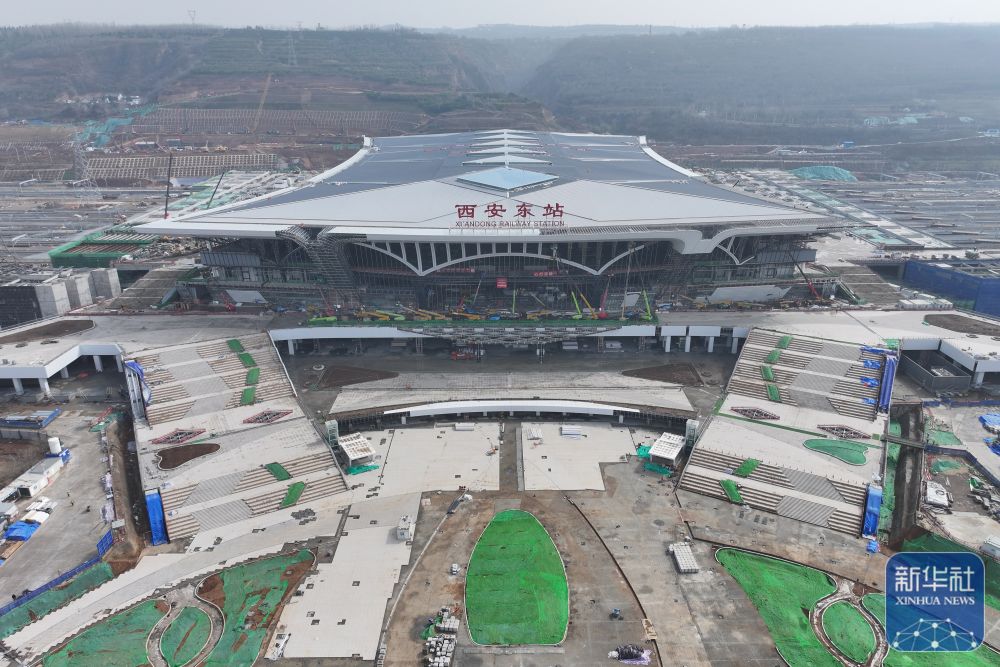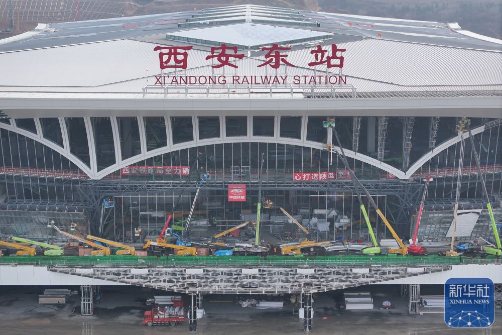 记者从中国铁路西安局集团有限公司了解到,特大型铁路综合交通枢纽西安东站春节期间持续施工,目前已完成总建设进度的90%。车站室内装修、配套设施安装等工作全速开展,轨道工程进入全面精调阶段,站场线路设备正进行集中整治,站场及动车所已启动静态验收,为后续建成开通、高质量投用运营奠定坚实基础。