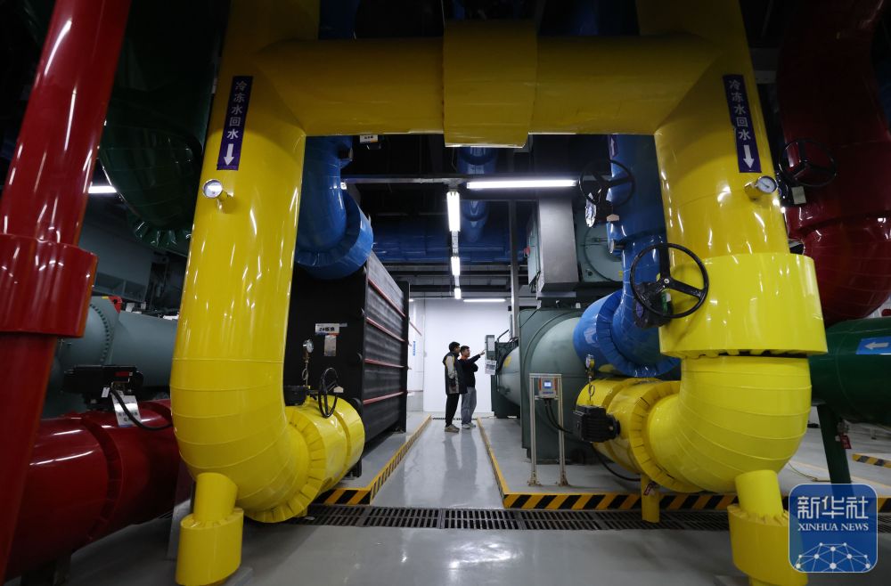 ↑ 2月26日,在位于京津产业新城高村数智创新园的中国电信京津冀智能算力中心,运维工程师对冷冻站进行人工巡检。