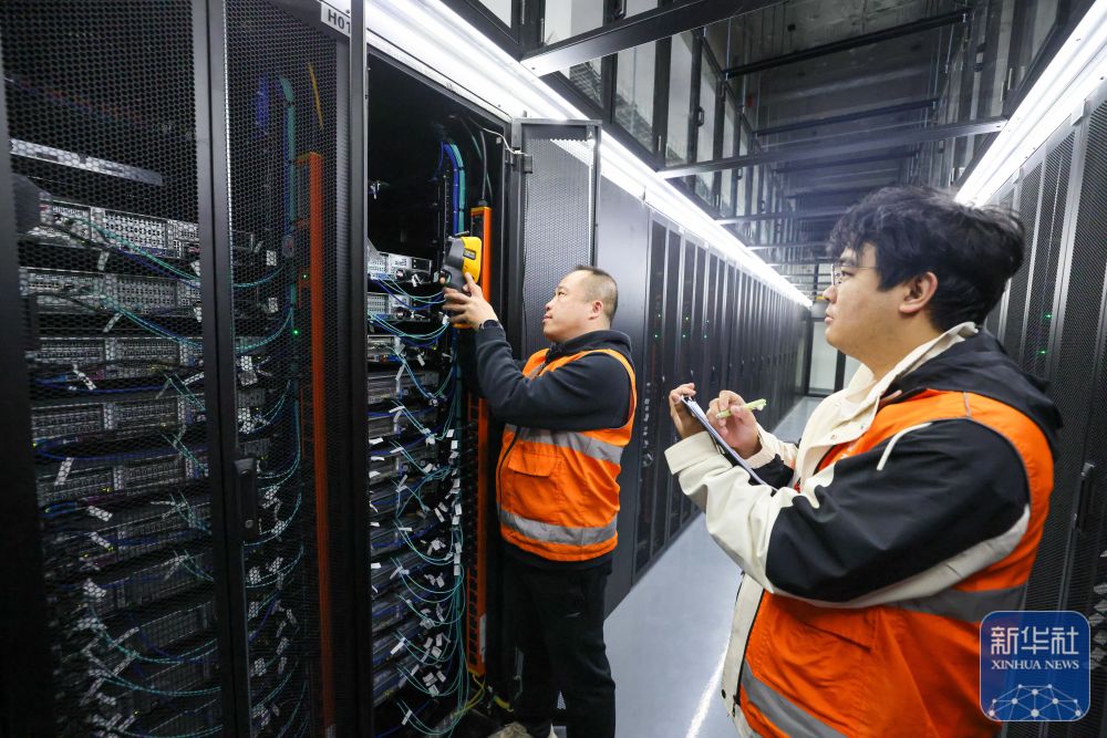 ↑ 2月26日,在位于京津产业新城高村数智创新园的中国电信京津冀智能算力中心,运维工程师巡检智算服务器。