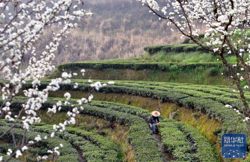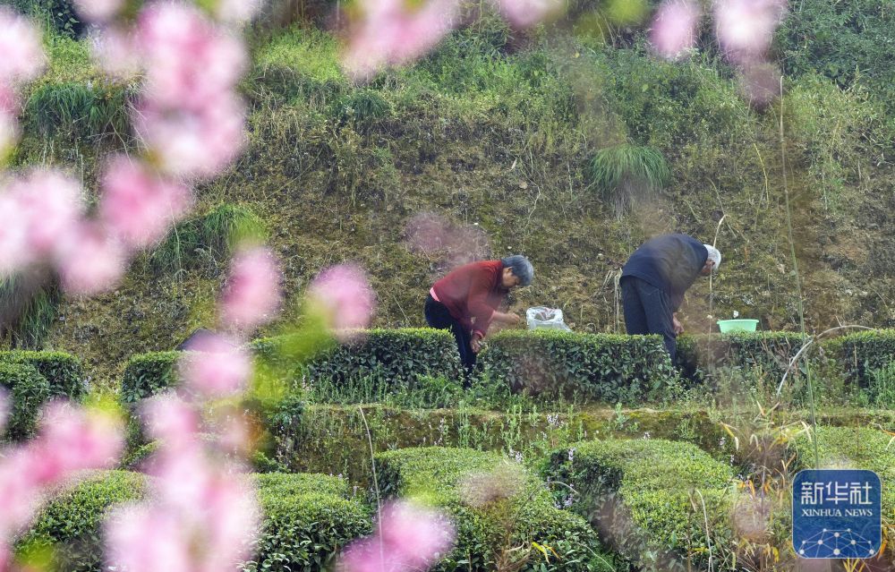 ↑ 3月13日,茶农在三峡库区湖北省宜昌市秭归县茅坪镇金缸城村一茶园采摘春茶。新华社发(王辉富 摄)
