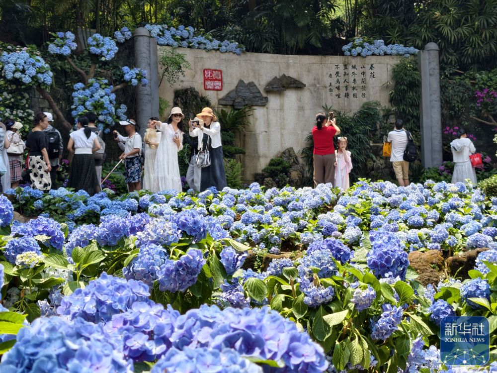 4月25日,游人在广西南宁市青秀山风景区绣球谷赏花游玩。新华社发(喻湘泉 摄)