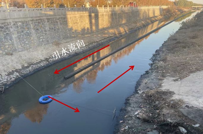 2023年12月5日,督察组现场督察发现,南乐县永顺沟源头段建有隔堤,引水回流稀释河道受污染的河水。资料图