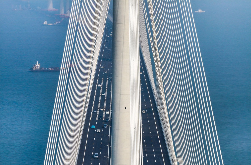 黄茅海跨海通道正式通车后,车辆行驶在黄茅海大桥上(2024年12月11日摄)。
