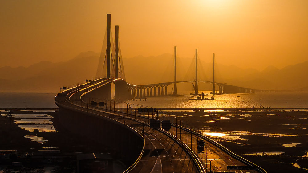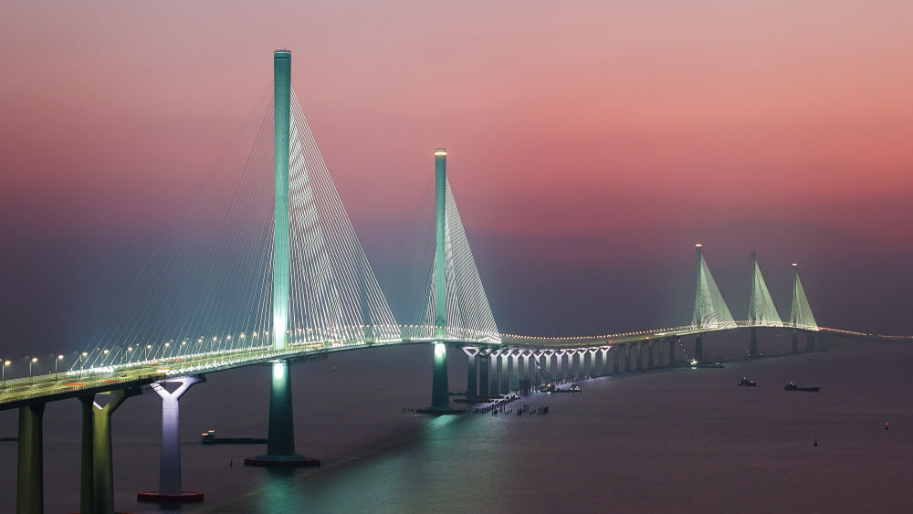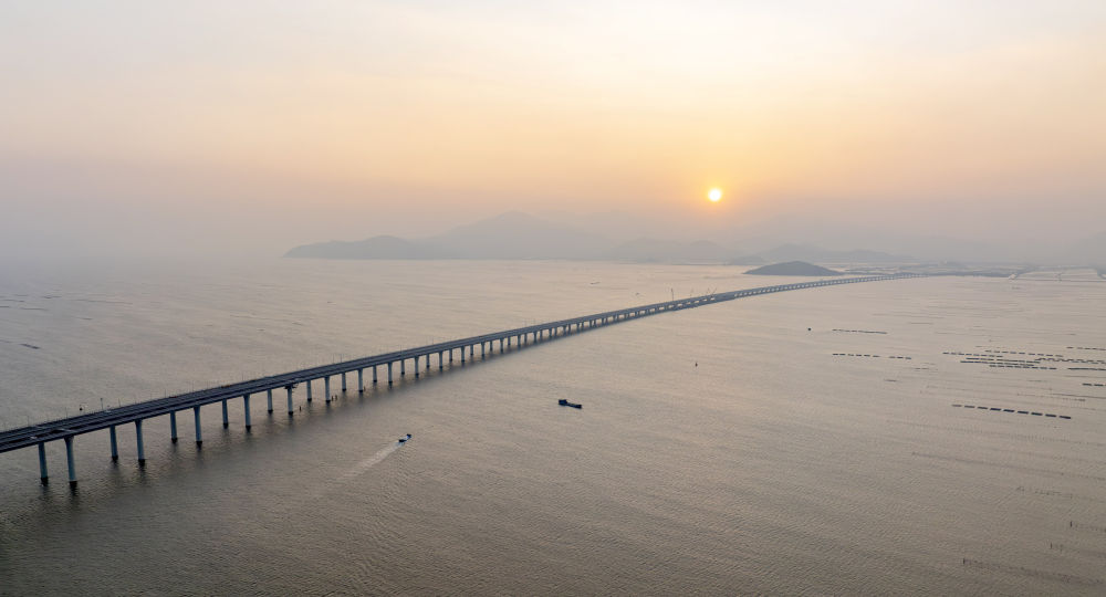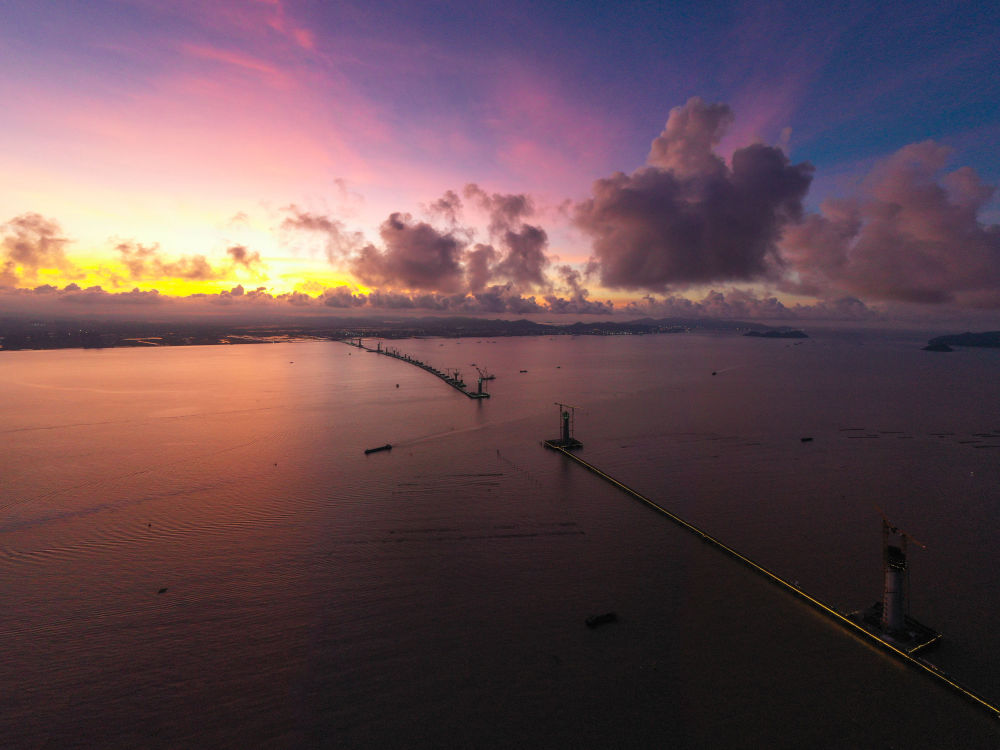 晨曦中的港珠澳大桥(2023年12月15日摄)。