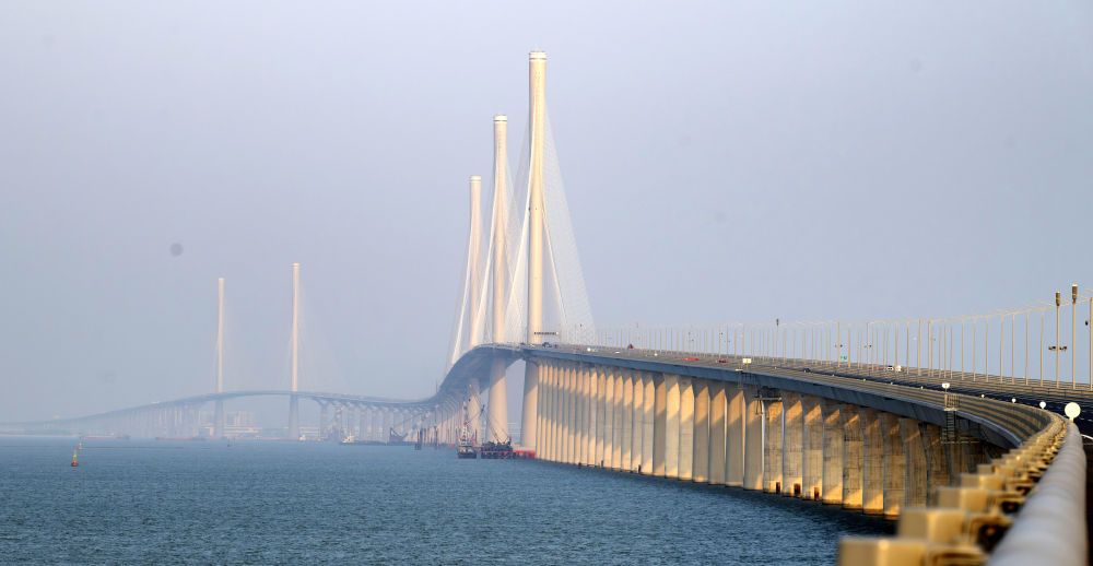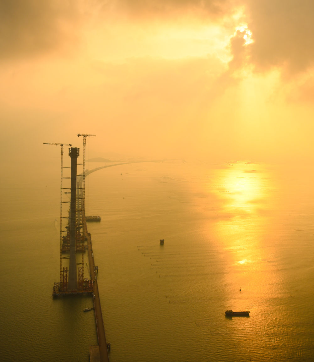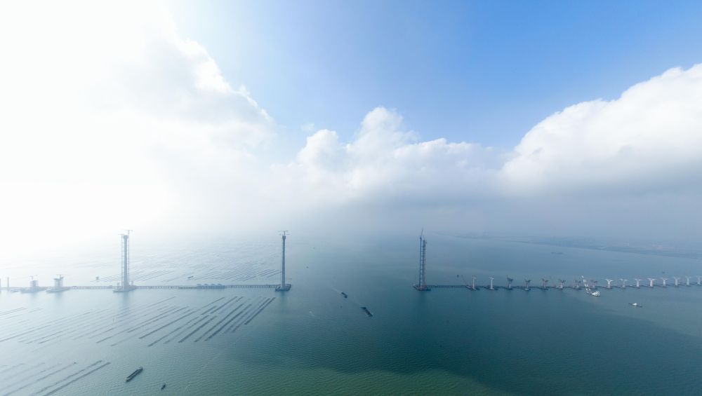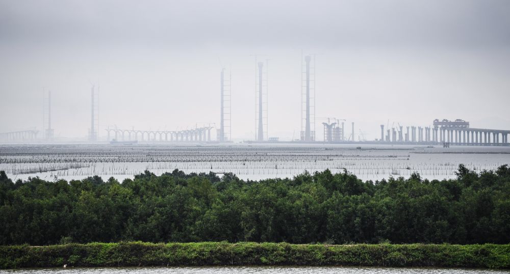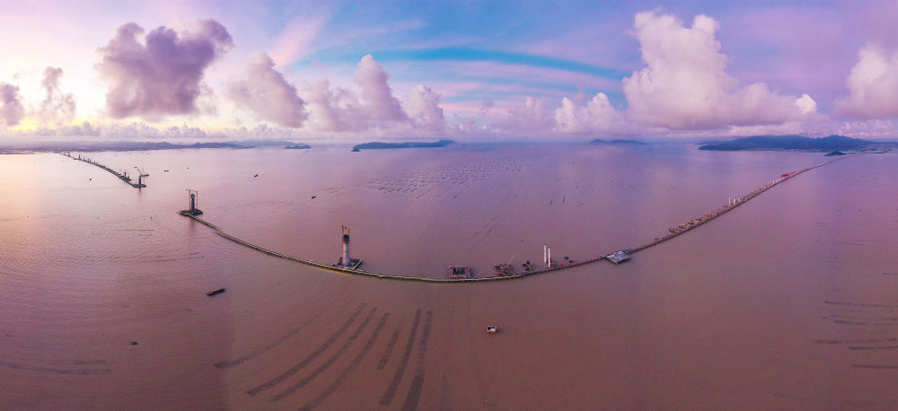 建设中的黄茅海跨海通道(2022年6月28日摄)。