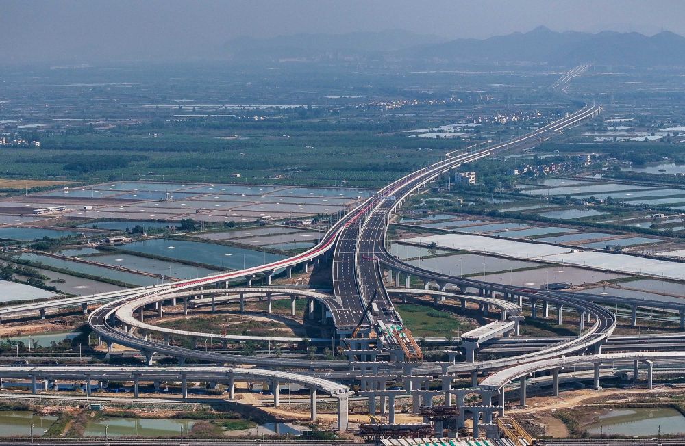 2023年12月8日拍摄的黄茅海跨海通道高栏港枢纽立交建设现场。