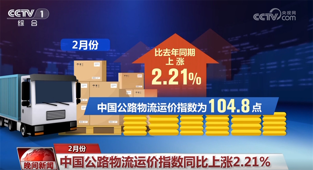 2月份:中国公路物流运价指数同比上涨2.21%
