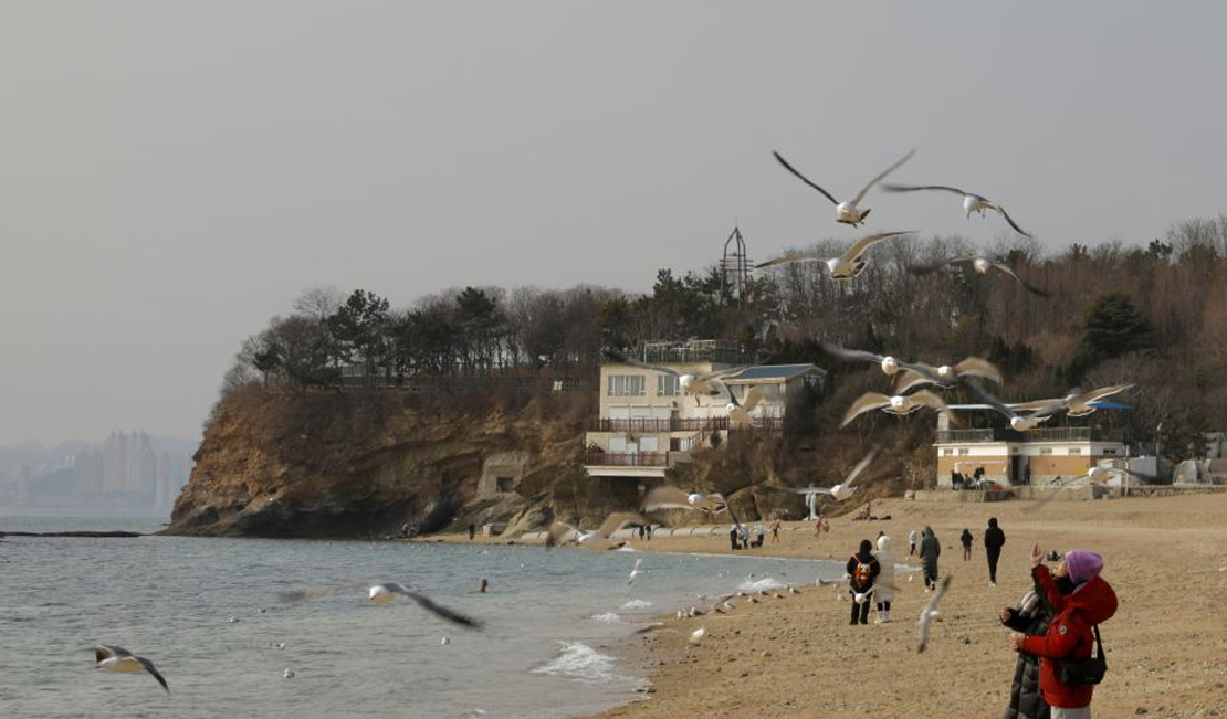 ↑ 人们在贵州“村超”球场跳苗族芦笙舞(无人机照片)。