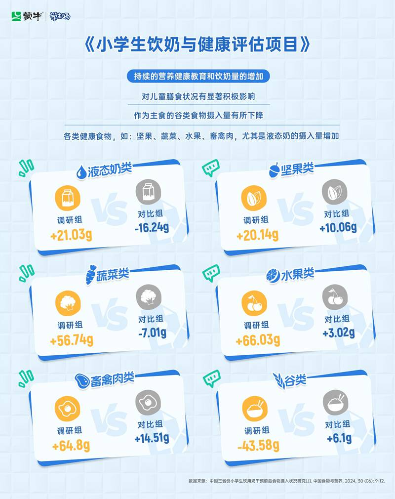 由蒙牛学生奶与中国学生营养与健康促进会共同实施的“小学生饮奶与健康评估”研究项目,在2024年9月圆满收官。研究成果表明,充足的牛奶及奶制品摄入对青少年儿童的体格发育、智力发展具有显著促进作用。