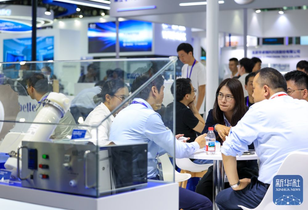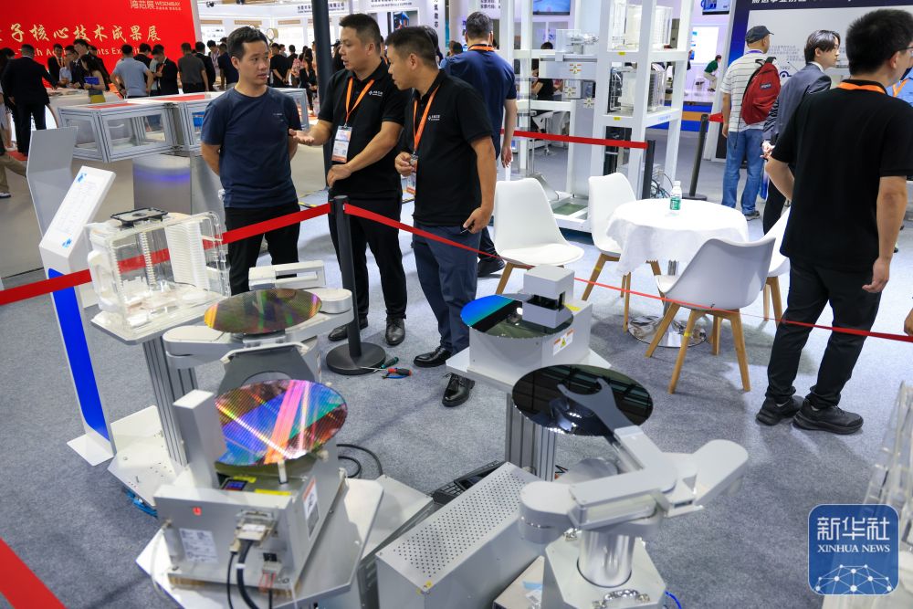 ↑ 10月15日,客商在一家半导体企业展台交流。