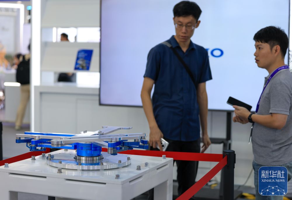 ↑ 10月15日,参观者了解晶圆搬运机器人。
