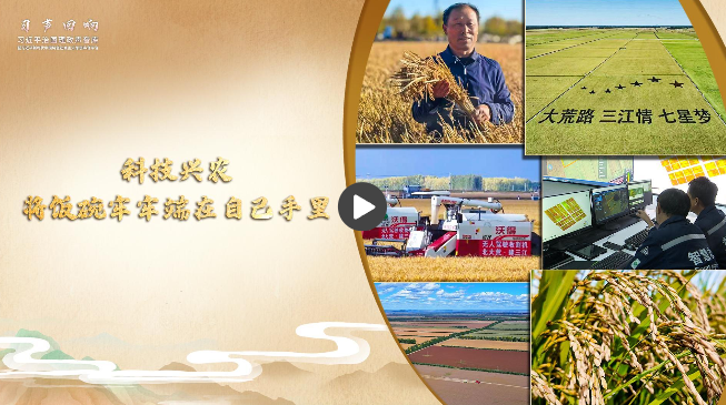 2018年9月25日,正在黑龙江省考察的习近平总书记来到七星农场北大荒精准农业农机中心。他走进稻田,拿起一把稻穗,看谷粒、观成色。总书记指出,中国人要把饭碗端在自己手里,而且要装自己的粮食。他嘱托北大荒人,农业要振兴,就要插上科技的翅膀。
