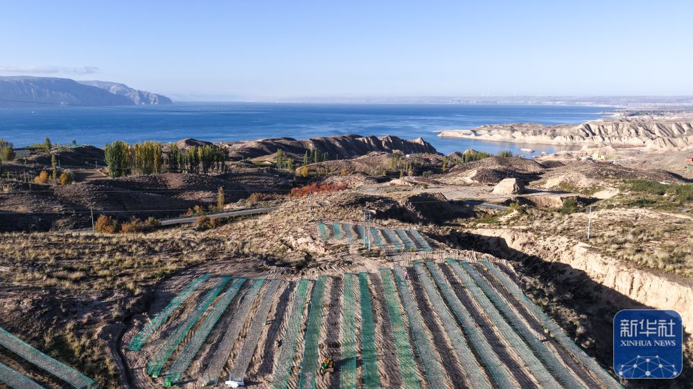 ↑ 10月17日拍摄于青海省海南藏族自治州共和县的恰恰湾沙滩旅游度假村(无人机照片)。