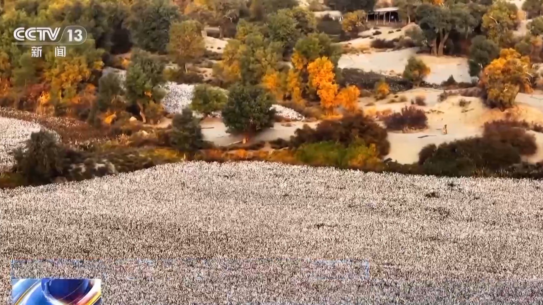 沙雅县盖孜库木乡卡尔墩村农户 赵满轩:我们这儿种了9000多亩的棉花地,种了十几年。这片胡杨林对我们的棉花地也非常好,可以阻挡风灾,因为棉花地处于塔克拉玛干沙漠的边缘,胡杨林阻止了沙漠向我们这边吞噬,要是没有胡杨林,这片有可能早就变成沙漠了,我们在这也待不下去。