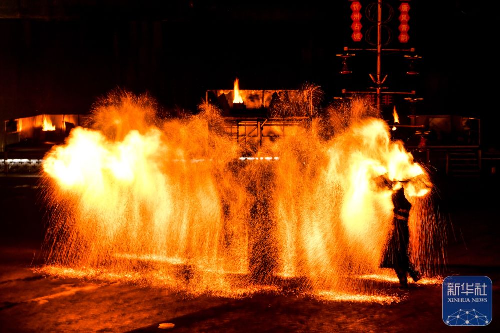 ↑ 这是10月23日拍摄的忻州古城内的“火壶”表演。
