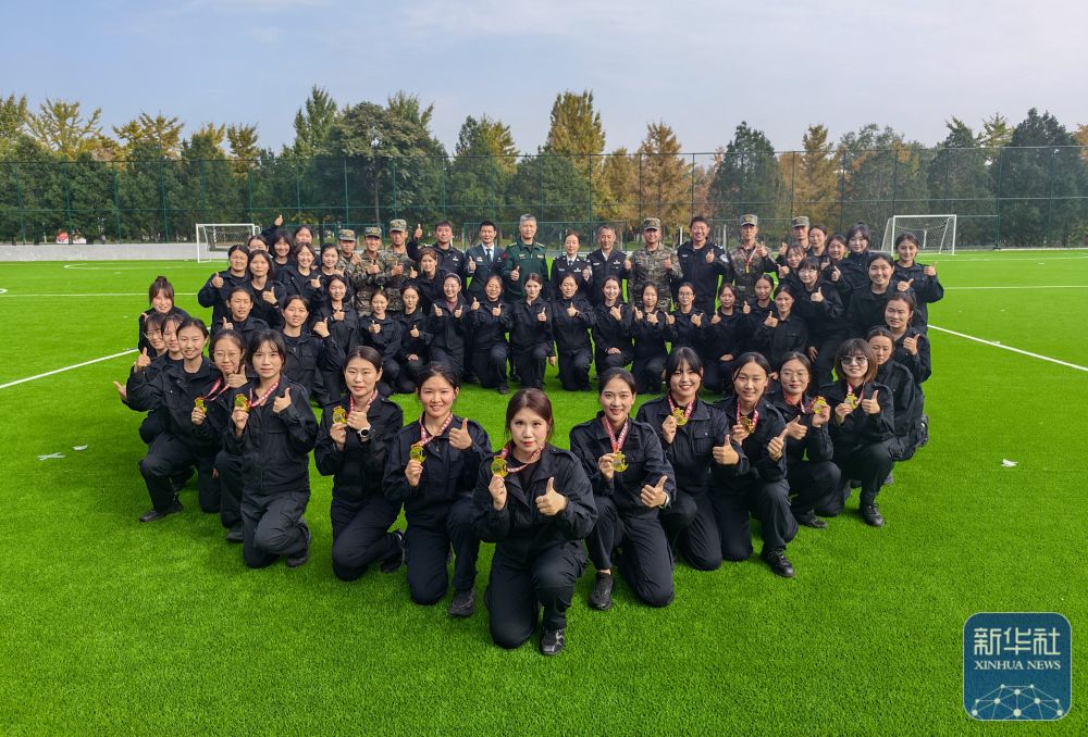 ↑ 10月30日,全体参训女刑警结业考试成绩合格,在结业仪式上合影。新华社发(桂琳 摄)