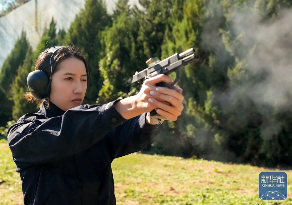 ↑ 10月20日,参训女刑警在进行“手枪精度射击”训练。新华社记者 殷刚 摄