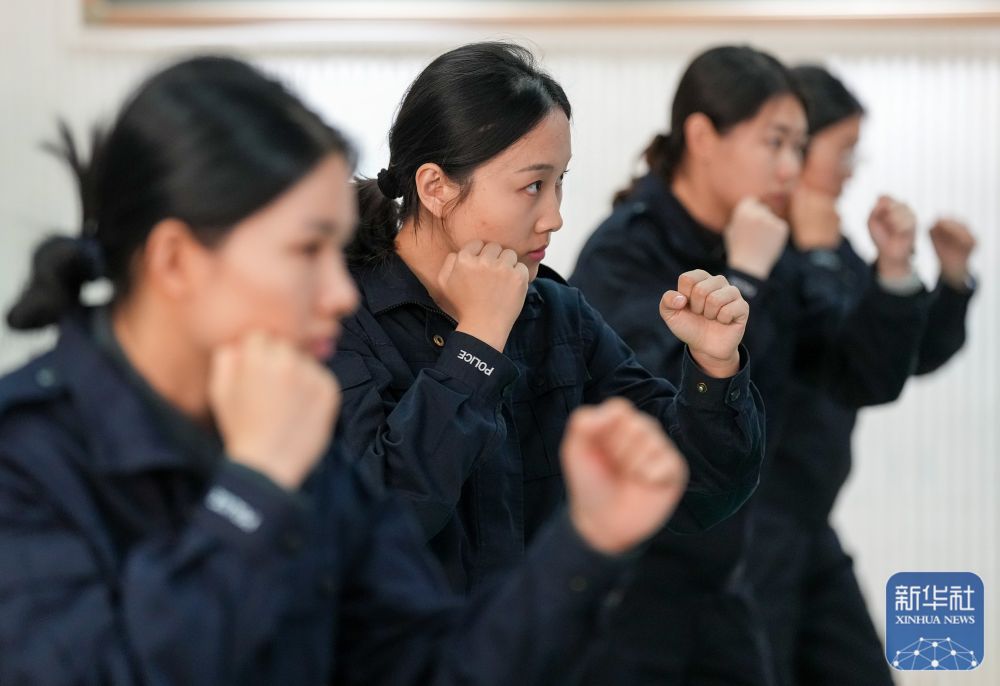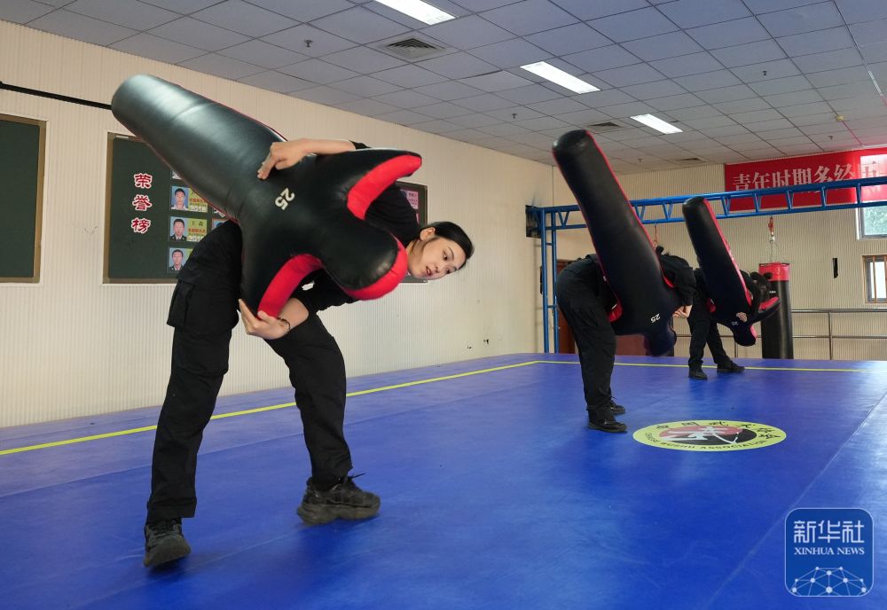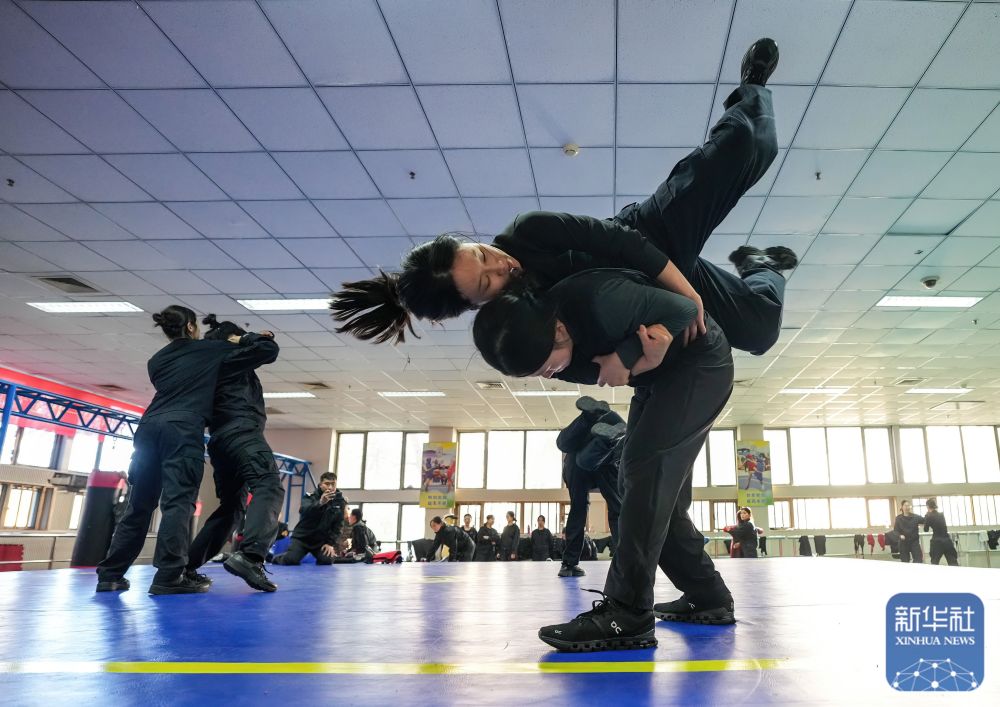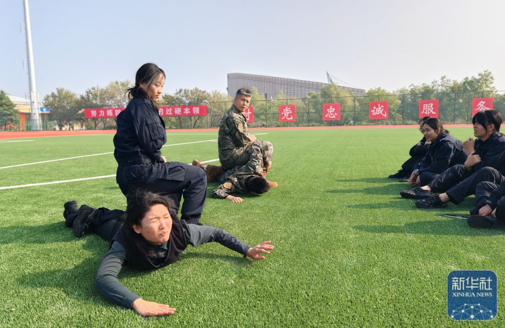 ↑ 10月23日,参训女刑警在进行抓捕格斗训练。新华社发(田为 摄)