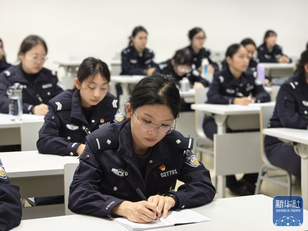 ↑ 10月11日,参训女刑警在进行新型涉网犯罪打击学习。新华社发(田为 摄)