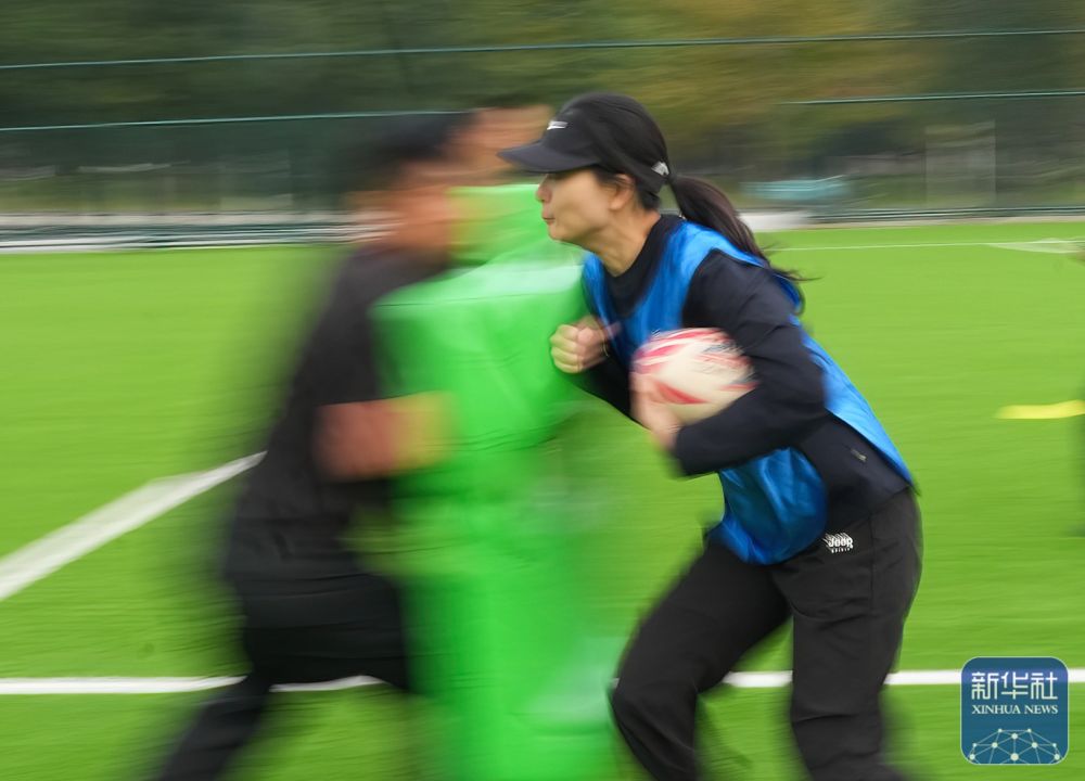 ↑ 10月23日,参训女刑警在进行“橄榄球冲撞”训练。新华社记者 殷刚 摄