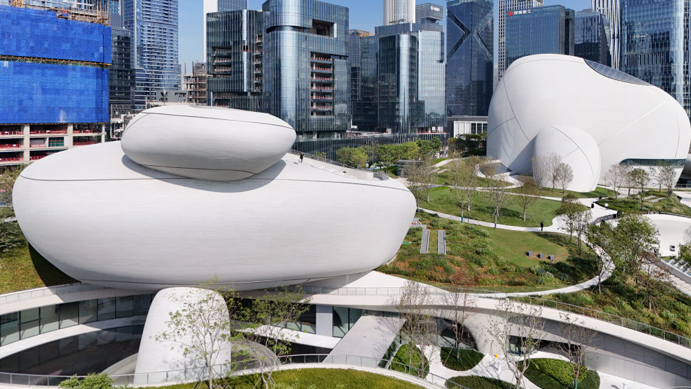 深圳湾文化广场整体设计灵感来自“海边原石”,总建筑面积达18.8万平方米,配备9大展厅,展陈面积超5万平方米,涵盖设计艺术展览、未来设计学苑、多元文化空间、跨界社交聚落四大功能场域,将打造成为具有全球影响力的设计文化综合体。新华社记者 梁旭 摄影报道