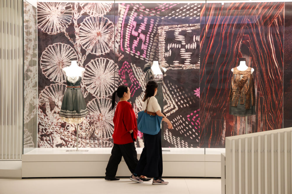 ↑11月1日,观众在深圳湾文化广场观看展览。