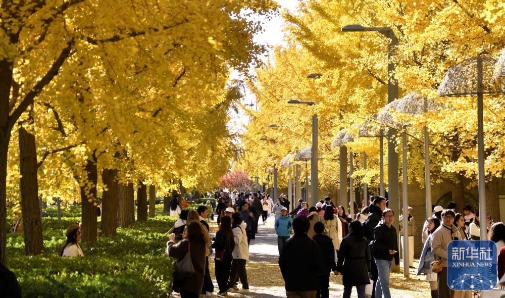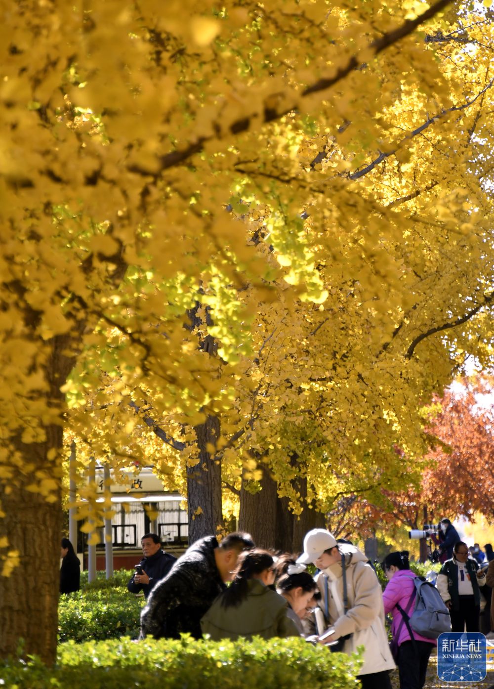 深秋时节,北京市街头和公园内的银杏等树木挂满黄叶,浓浓的秋色吸引大批市民踏秋赏景。新华社记者 李欣 摄影报道