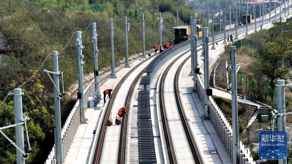 随着两节25米长的钢轨成功完成无缝焊接,这条双向全长近24公里的杭德市域铁路高架段正式进入了钢轨焊接施工阶段,为2026年全线开通运营奠定了基础。新华社发(谢尚国 摄)