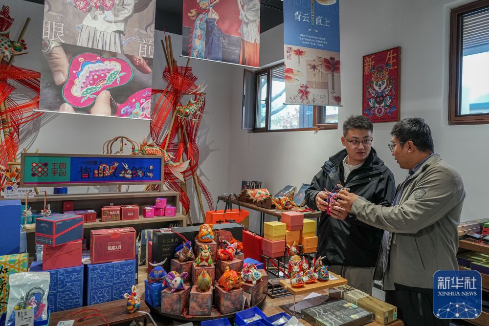 ↑ 11月7日,游人在双泉庄村民宿片区挑选文创商品。