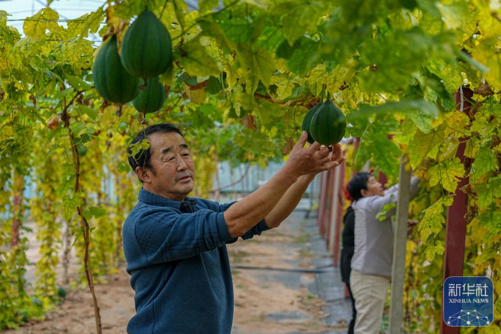 ↑ 11月7日,双泉庄村村民在收获中药材栝楼。