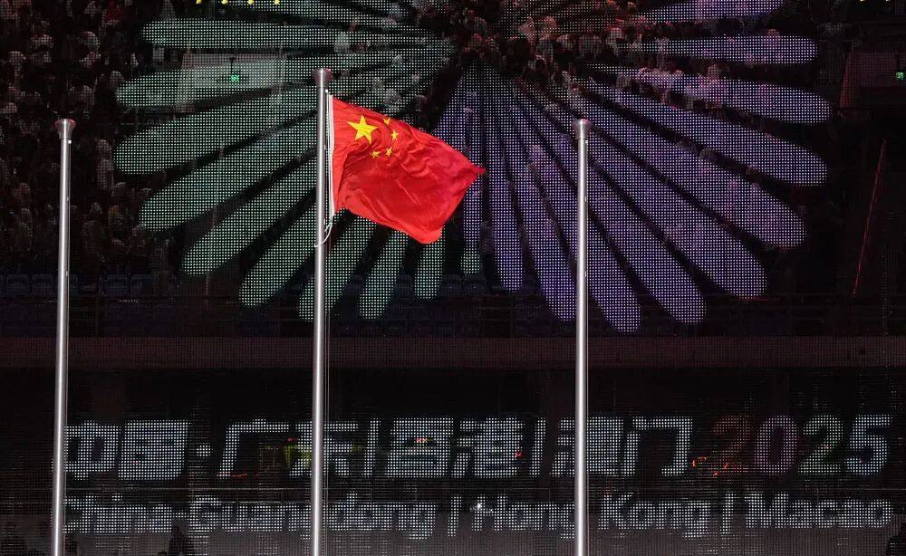这是开幕式现场拍摄的中华人民共和国国旗。新华社记者黄伟摄