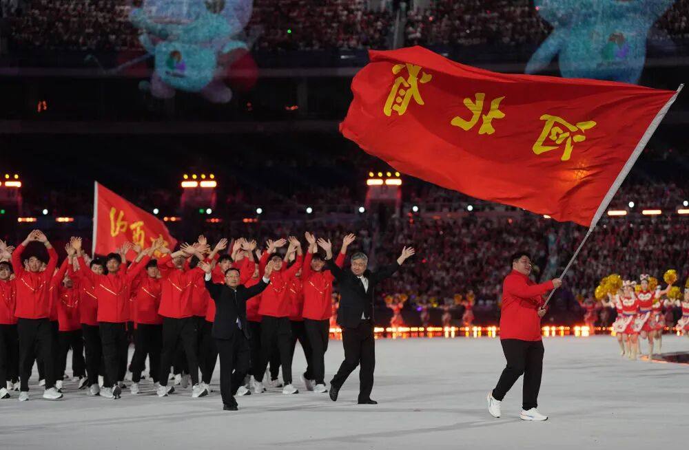 河北省体育代表团在入场仪式上。新华社记者杜宇摄