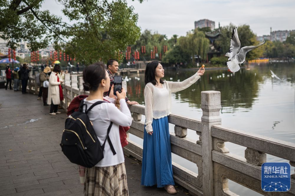 立冬过后,有“春城”之城的昆明暖意犹在,不少市民游客到户外游玩赏景、休闲散心。