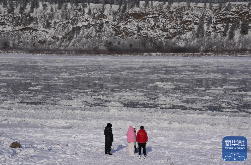 ↑ 11月11日,游客在黑龙江大兴安岭地区漠河段观赏“跑冰排”景观。新华社发(梁志强摄)