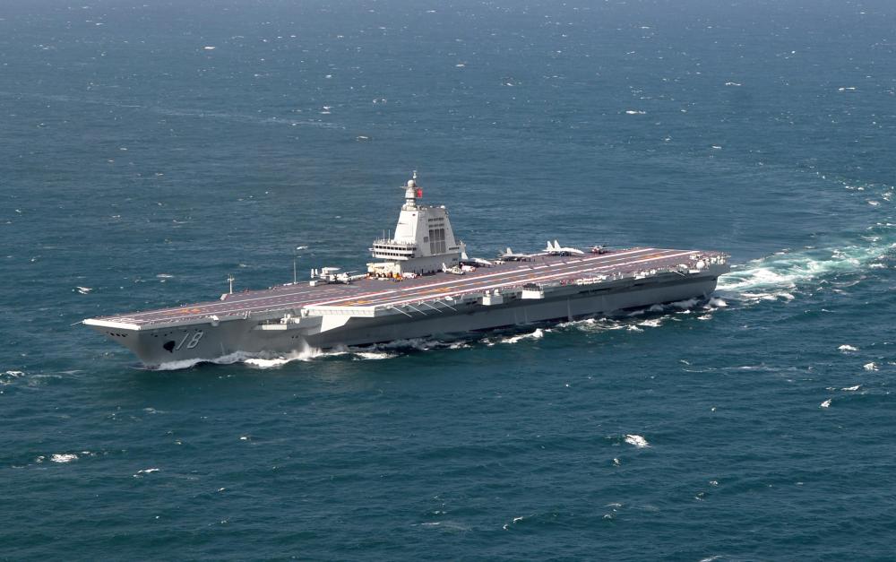 日前,海军福建舰航母编队组织海上多科目训练。这是福建舰入列后首次海上实兵训练。