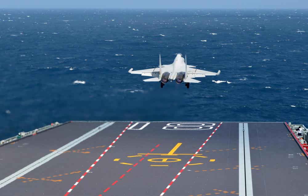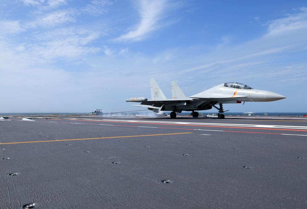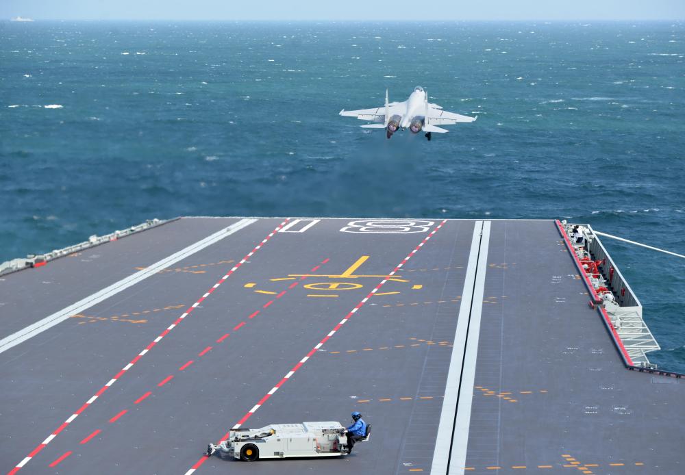 任务期间,由福建舰、延安舰、通辽舰等多艘舰艇组成的航母编队,先后开展编队航行、舰机联合搜救、舰载机起降等多个科目训练。
