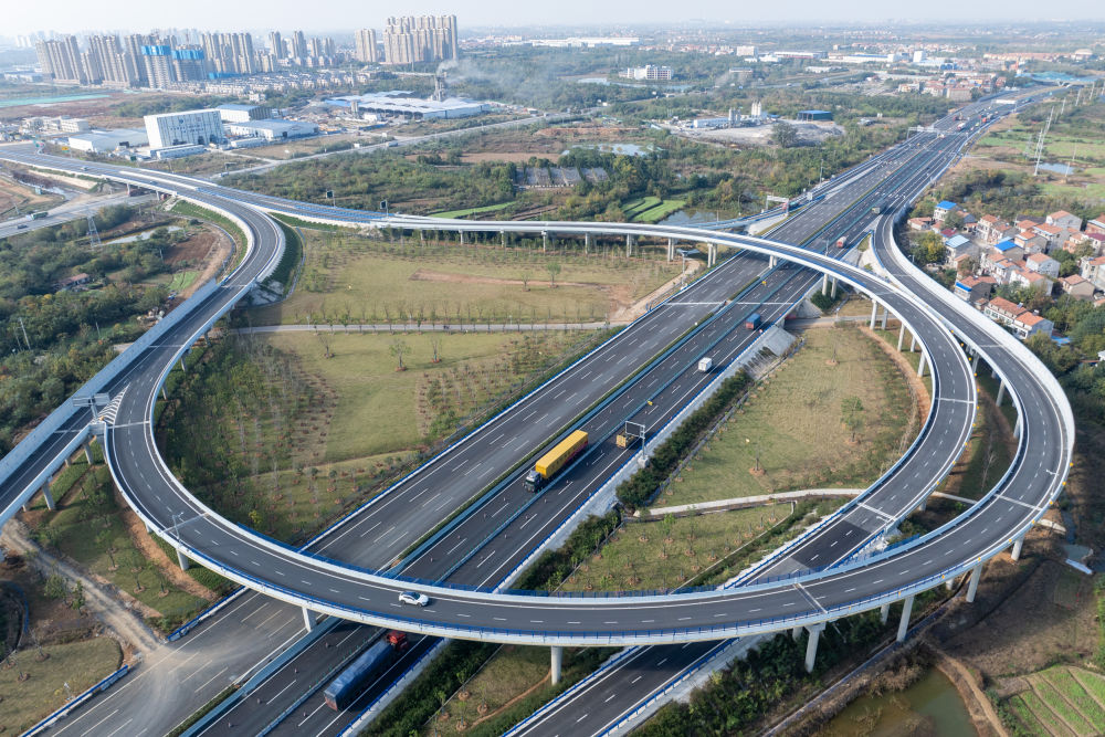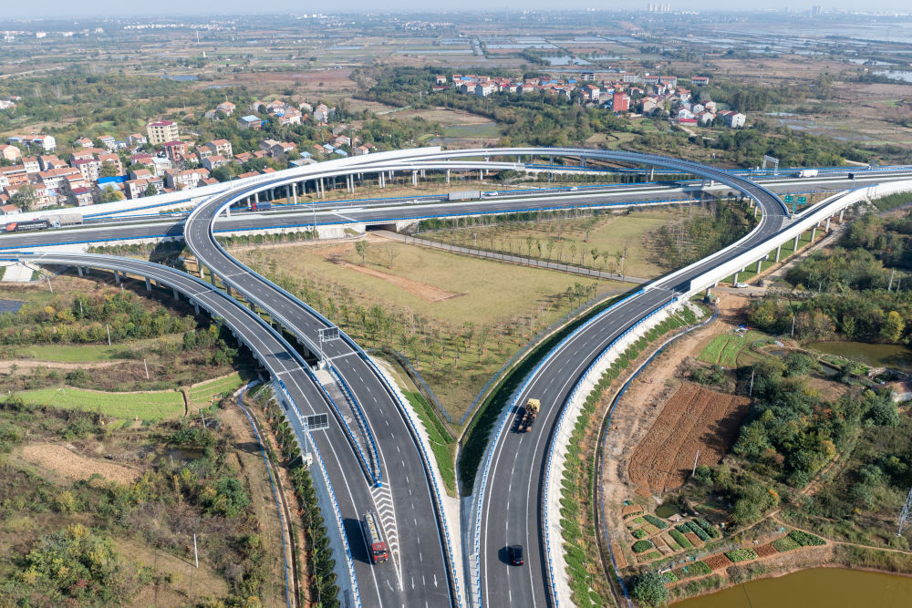 ↑这是11月20日拍摄的京港澳高速公路改扩建孝感东互通枢纽(无人机照片)。