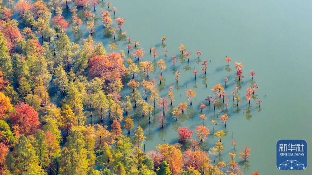 ↑ 11月20日拍摄的江苏省常熟市尚湖国家城市湿地公园景色(无人机照片)。新华社发(王须中 摄)