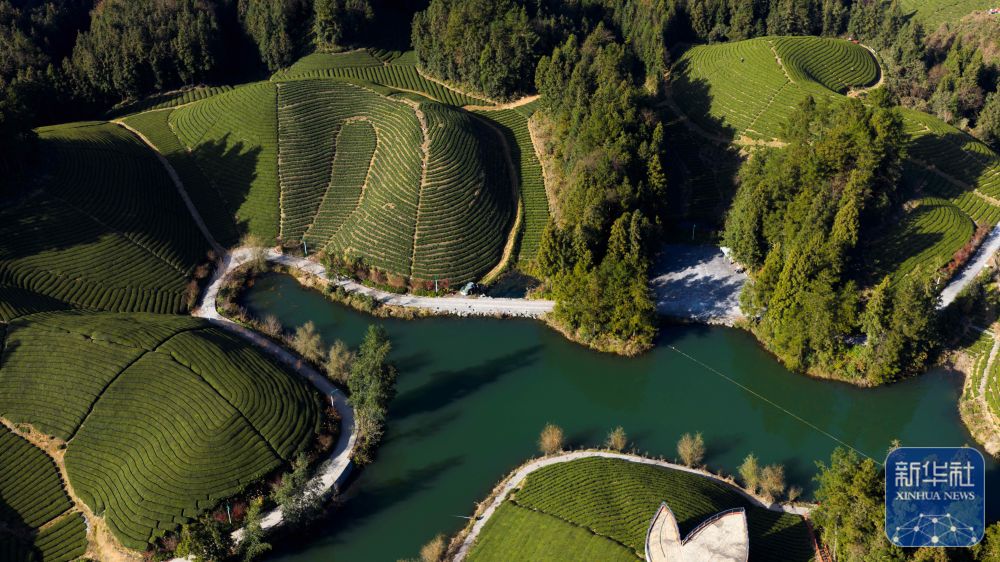 ↑ 11月20日拍摄的湖北省恩施土家族苗族自治州鹤峰县走马镇杨柳池茶园(无人机照片)。新华社发(杨顺丕 摄)