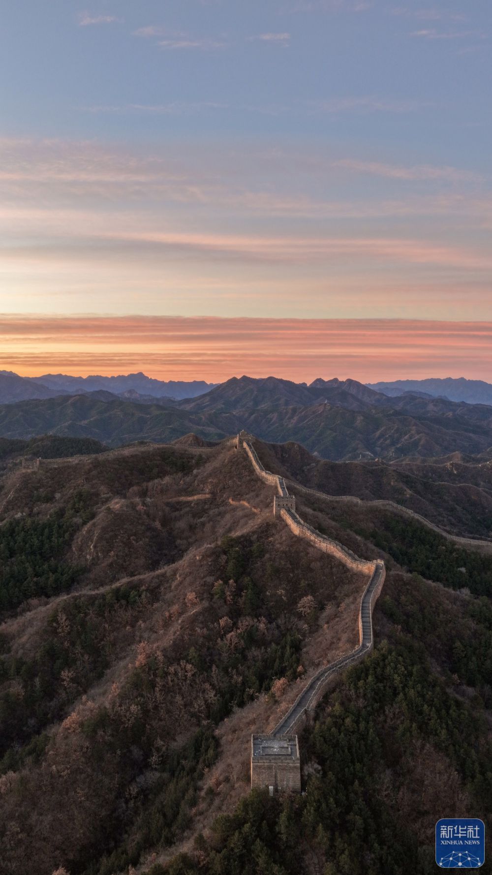 ↑ 11月20日在河北省承德市滦平县拍摄的金山岭长城晨景(无人机照片)。新华社发(周万平 摄)