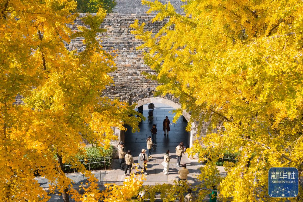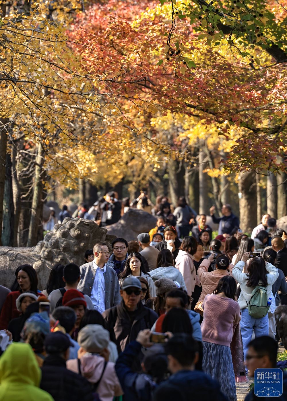↑ 11月21日,游人在南京明孝陵景区石象路游玩。新华社发(辛一 摄)