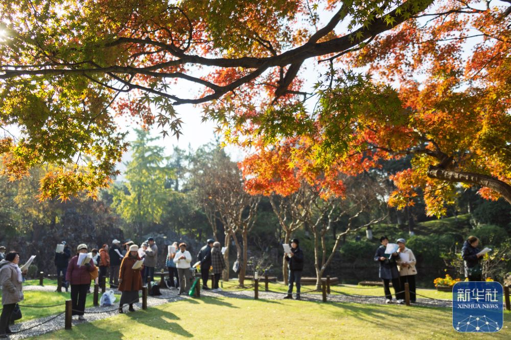 ↑ 11月21日,市民在南京莫愁湖公园唱歌休闲。新华社发(孙忠南 摄)