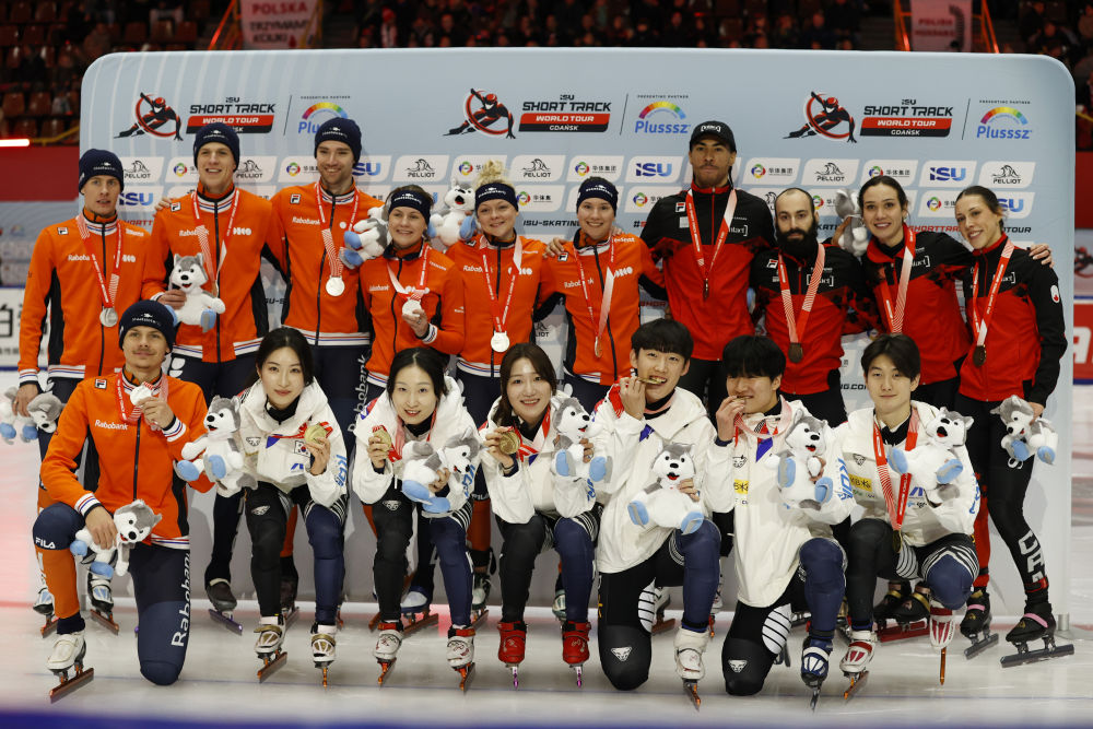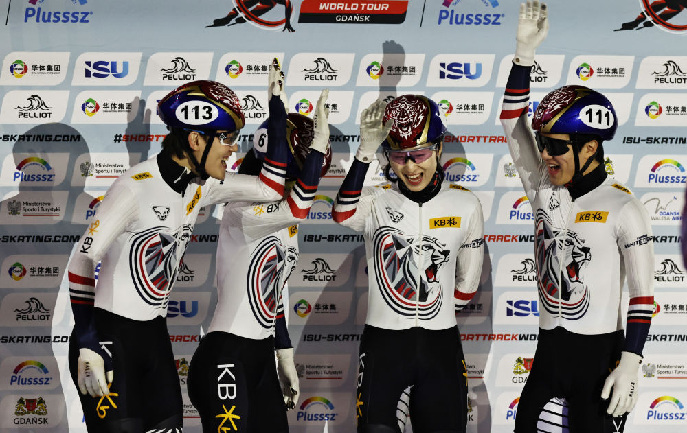 11月23日,在波兰格但斯克举行的2025-2026赛季国际滑联短道速滑世界巡回赛暨米兰冬奥会资格赛第三站混合团体接力A组决赛中,中国队获得第四名。
