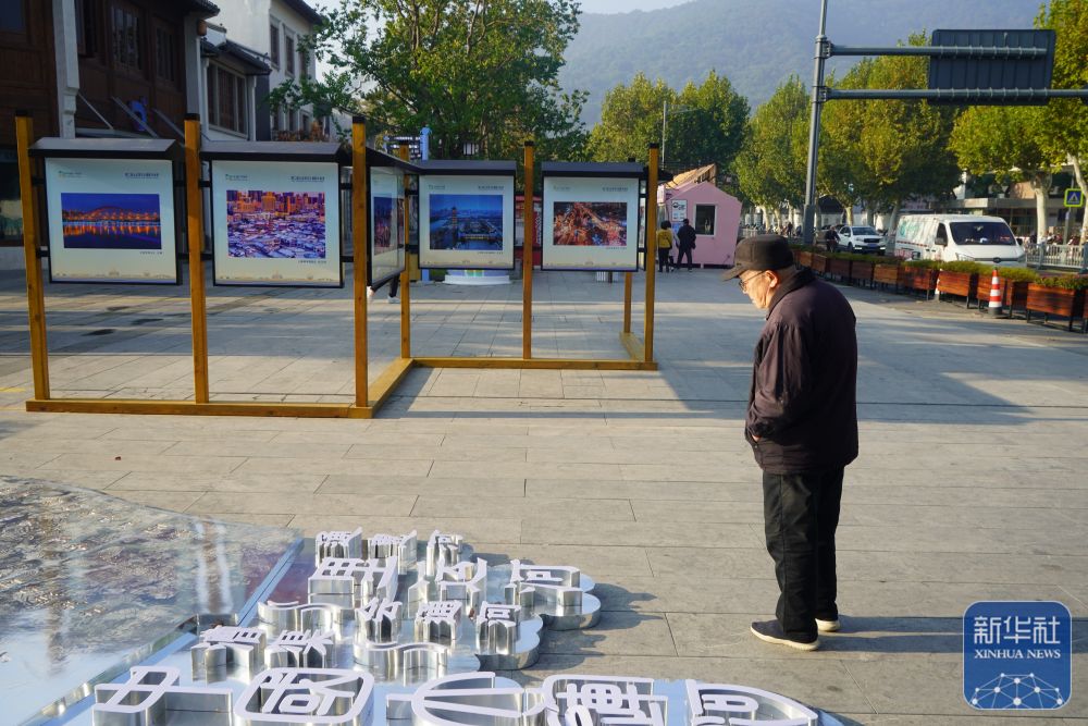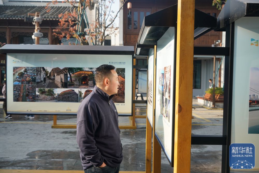 ↑ 11月23日,一位老人在第二届大运河文化摄影展现场驻足参观。