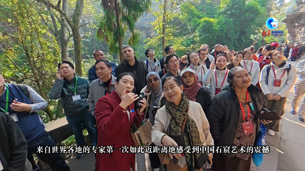 在宝顶山,千手观音熠熠生辉,摩崖造像精湛恢宏。来自世界各地的专家第一次如此近距离地感受到中国石窟艺术的震撼,也深刻体会到大足石刻背后长期、系统、科学的保护工程。