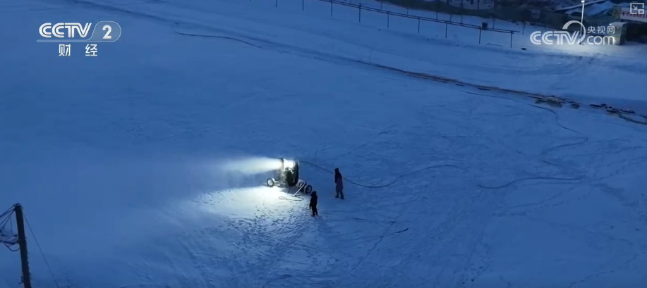 在伊春一家景区,3台造雪机正在不间断作业,打造30厘米厚的松软雪道,这片夏天的彩虹旱滑道即将变身为1.2万平方米的专业滑雪场。