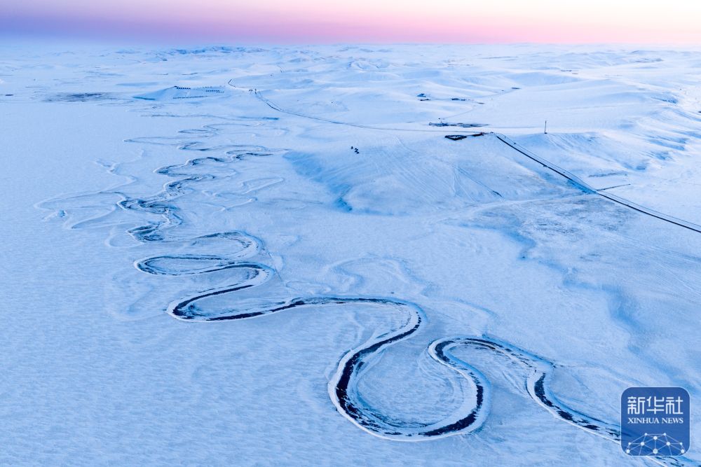 ↑ 这是12月3日在内蒙古呼伦贝尔市陈巴尔虎旗拍摄的流经雪原的莫尔格勒河(无人机照片)。新华社记者 达日罕 摄