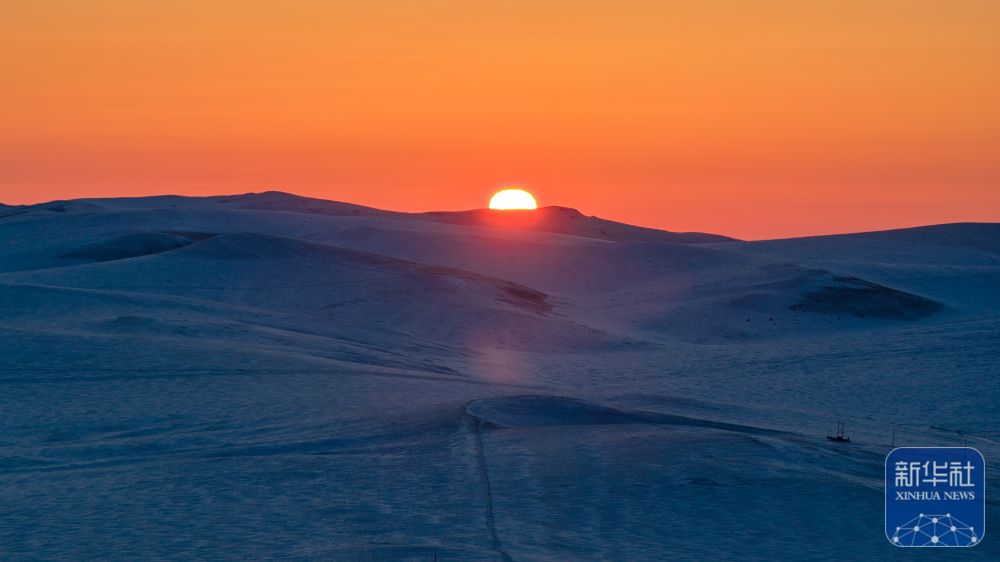 ↑ 这是12月3日在内蒙古呼伦贝尔市陈巴尔虎旗拍摄的呼伦贝尔大草原日出风光(无人机照片)。新华社记者 马金瑞 摄